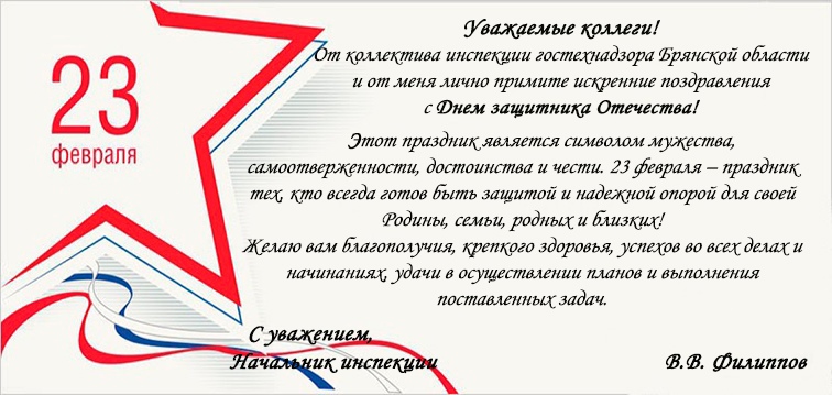 Поздравление начальника инспекции гостехнадзора Брянской области     В.В. Филиппова с 23 февраля
